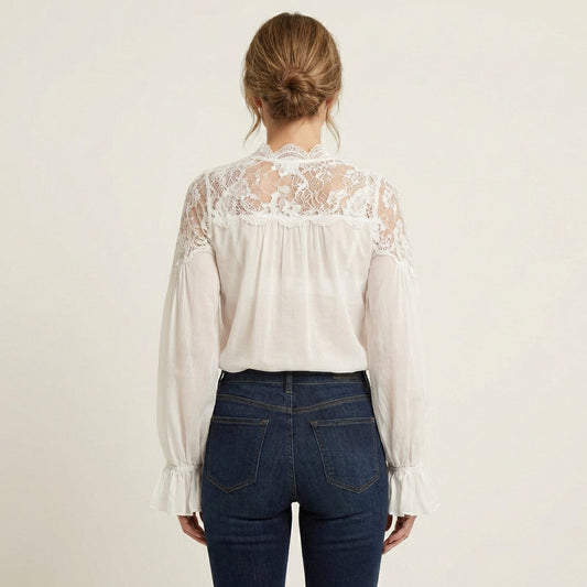Jourdin | Linen & Cotton Lace Patchwork Shirt